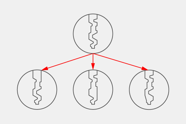 Замок для хвіртки, гаражний замок, поштова скринька, вхідні двері та горище можуть бути закриті на один ключ або на майстер-ключ. Позбавтеся великої кількості непотрібних ключів.